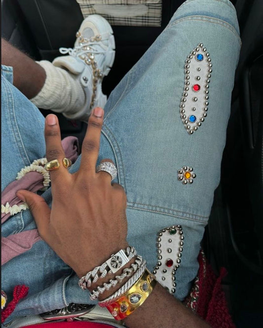 Kapital 140z Carpenter Gemstone Studded Denim ShortsRegular price ₦252,500.00 NGNRegular priceUnit price per₦0.00 NGNSale price ₦252,500.00 NGN