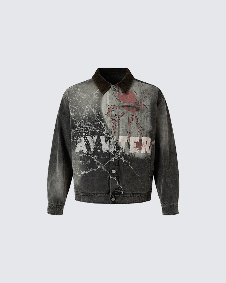 The AYWTER Jacket is more than outerwear — it’s statement. Cut in a relaxed, oversized silhouette, the jacket is built from heavyweight washed denim with a corduroy collar for contrast and structure.
