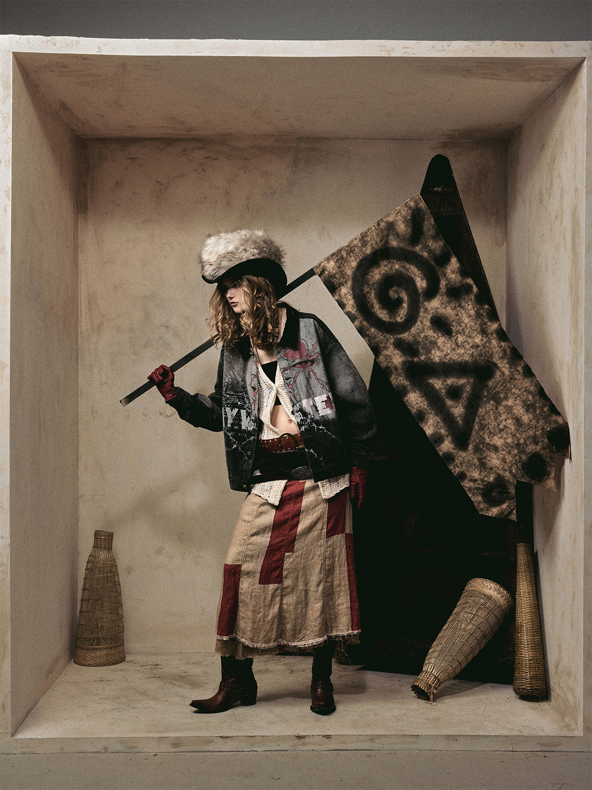 - Distressed + fragmented graphic print