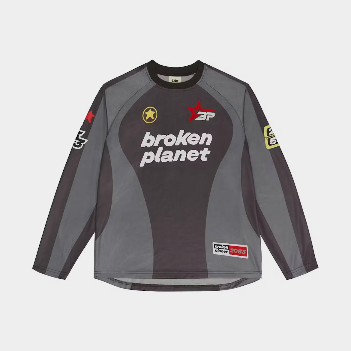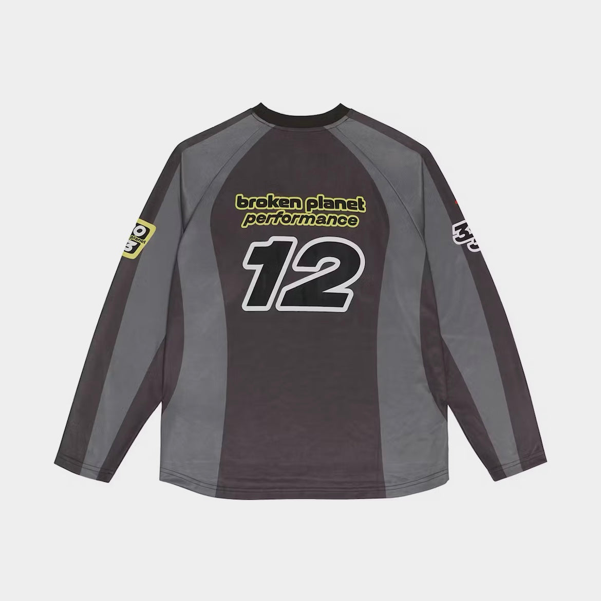 This long sleeve from Broken Planet merges vintage football energy with dystopian edge. Numbered at the back, branded at the front — it’s movement, rebellion, and street-coded taste in one silhouette.