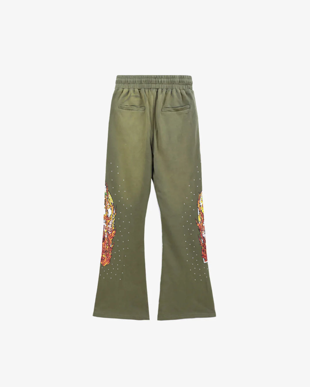 Who Decides War Flare Pants are a statement piece known for their bold, avant-garde design. Created by the New York-based brand Who Decides War, these pants often feature distinctive flared legs and intricate detailing, such as embroidered patches, distressing, or vibrant prints. The brand is recognized for its focus on sustainability and craftsmanship, blending streetwear aesthetics with high-fashion elements
