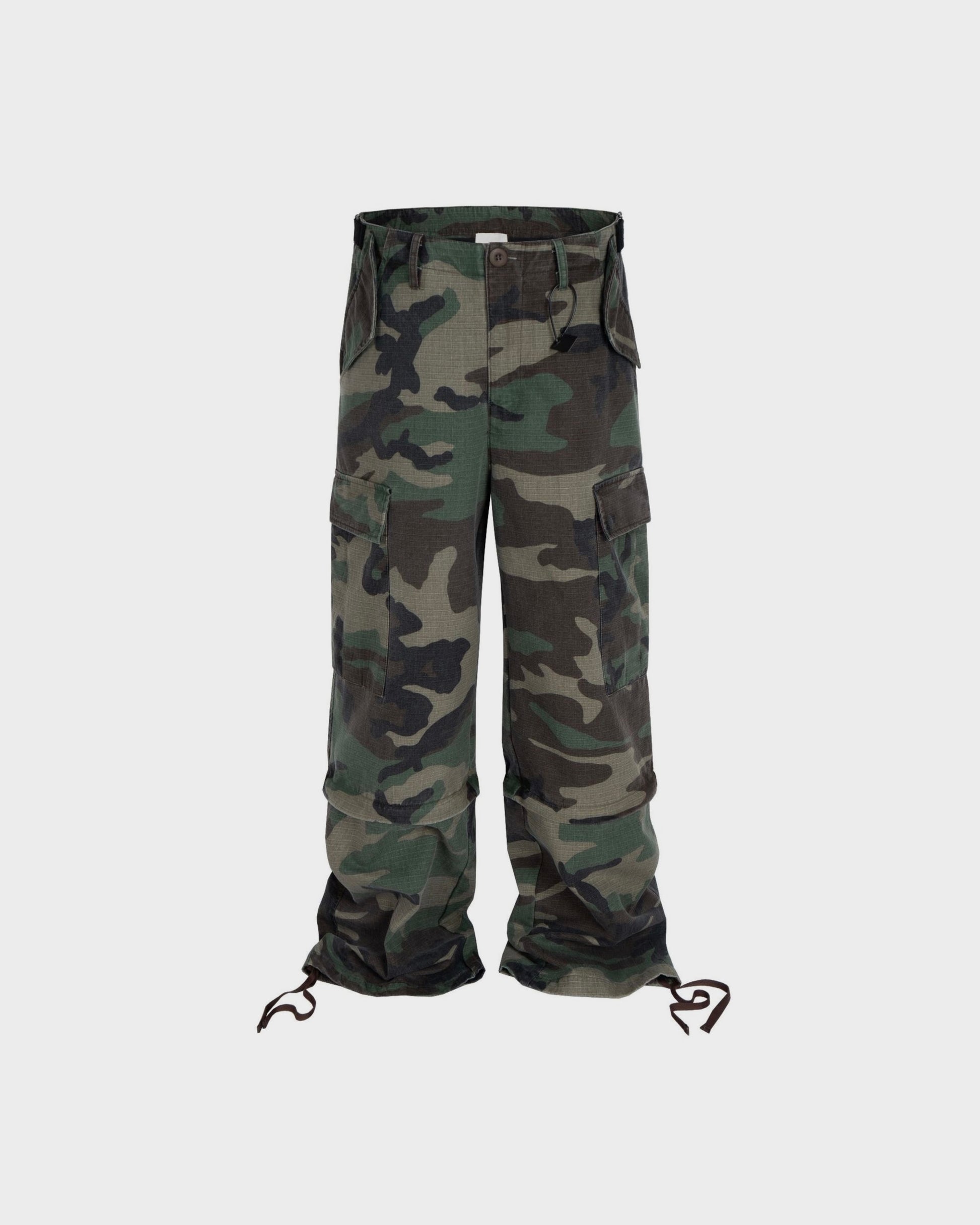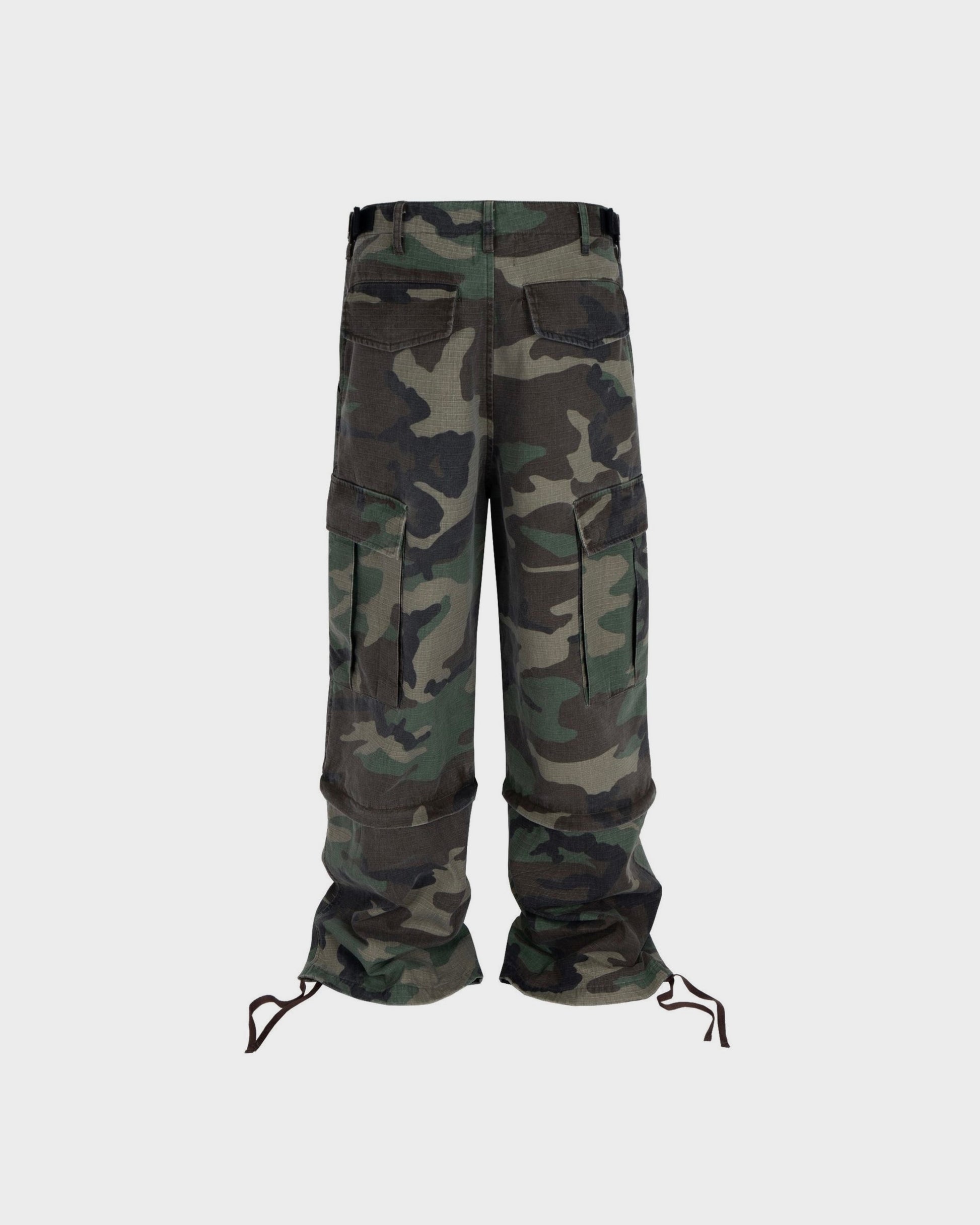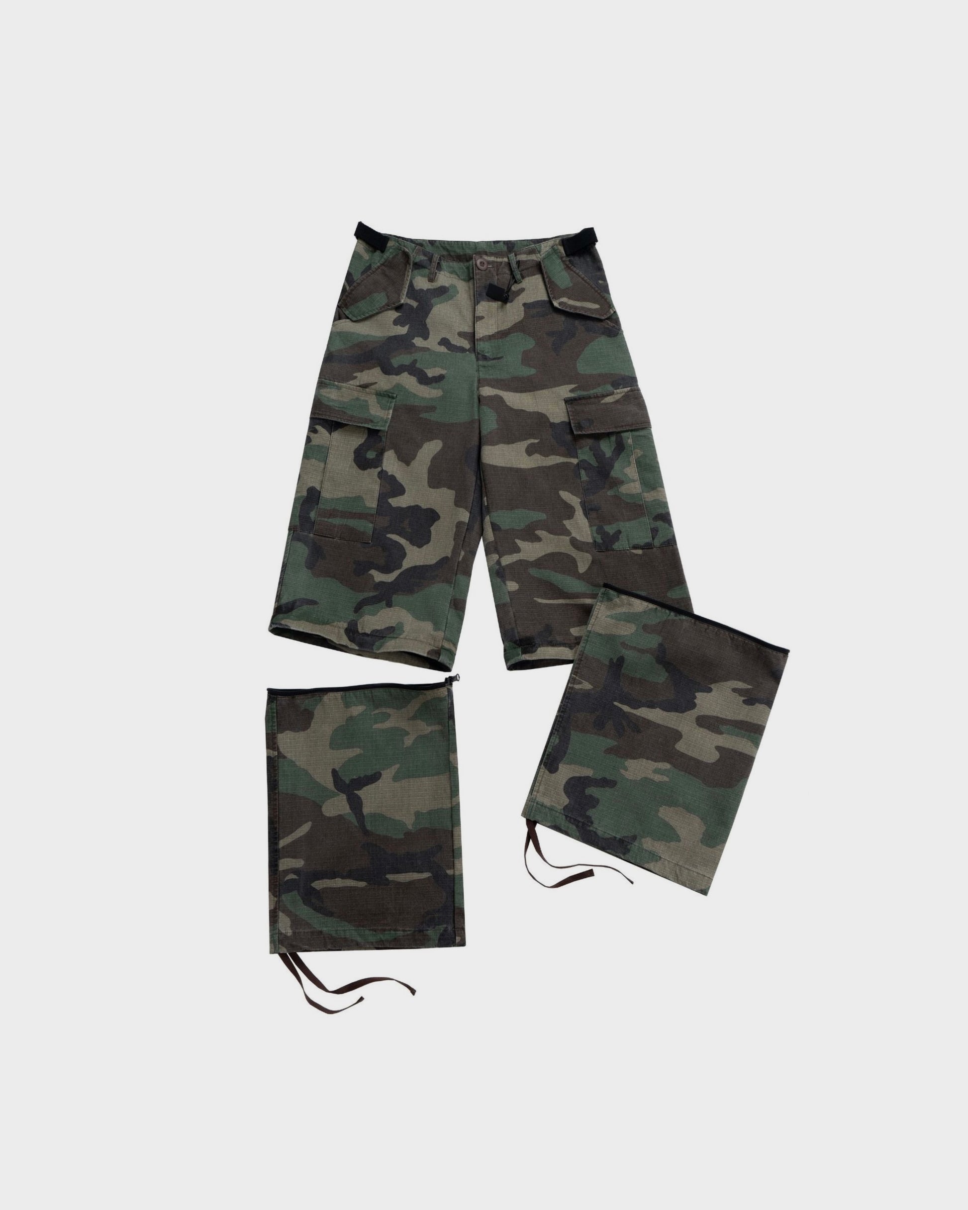 Built for versatility, these camo combat pants feature a detachable design that lets you switch from full-length trousers to shorts in seconds. Crafted from durable cotton-blend fabric with a classic camouflage print, they deliver both rugged utility and everyday style. Adjustable drawstrings at the cuffs allow for a customizable fit, while multiple cargo pockets provide functional storage. Perfect for streetwear layering, outdoor activity, or casual rotation.