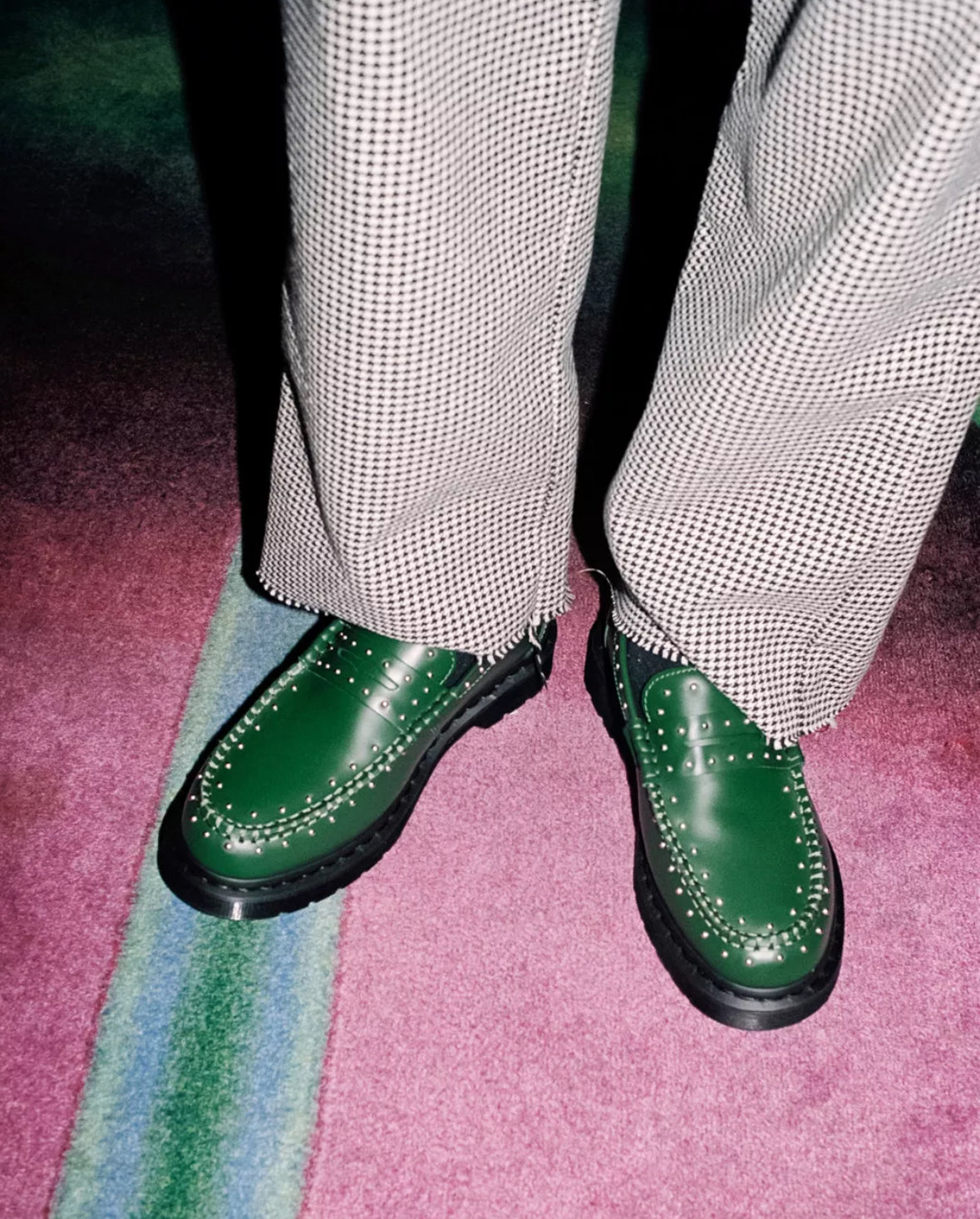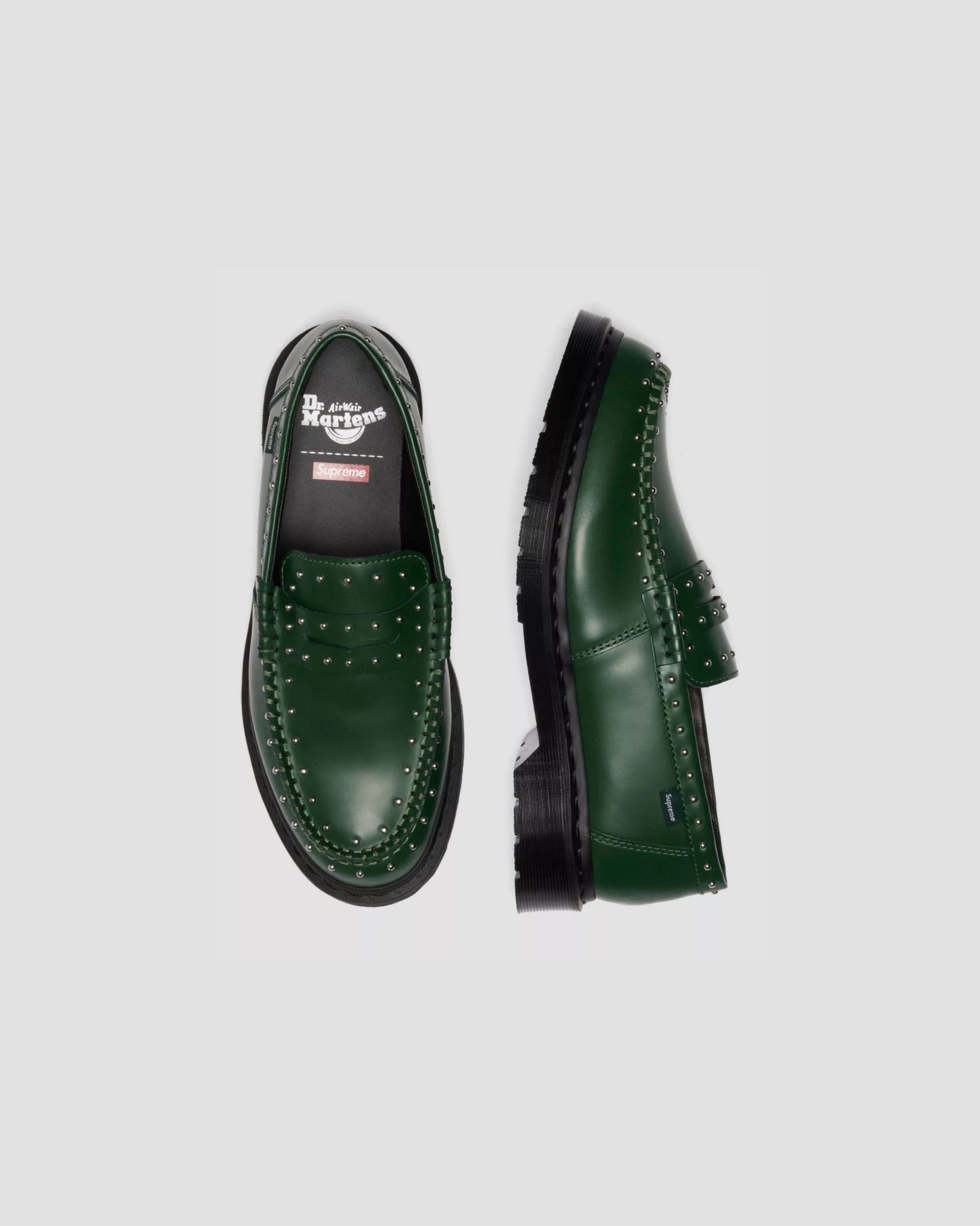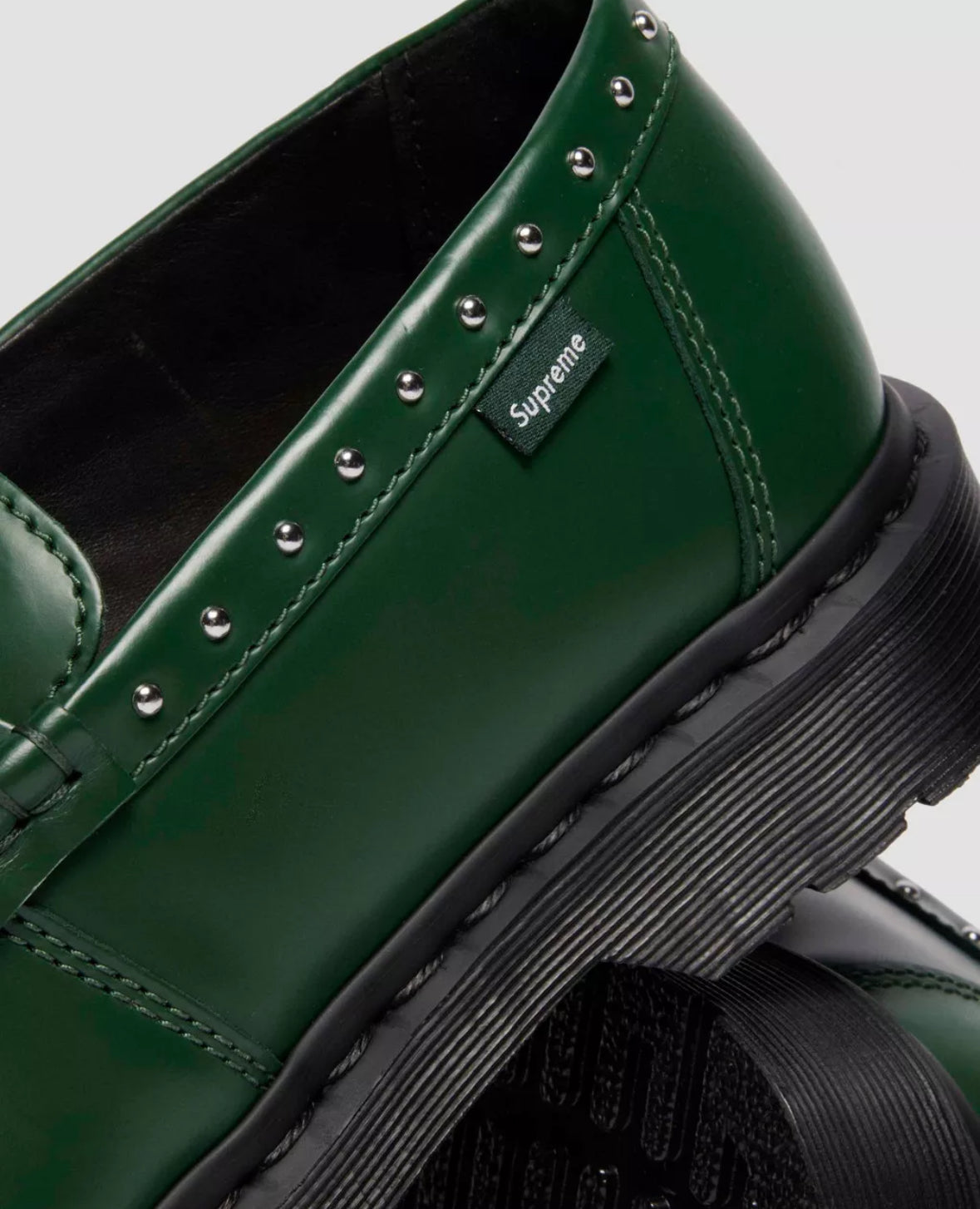 A bold reinvention of a timeless classic. This limited-edition collaboration between Dr. Martens and Supreme delivers premium craftsmanship with streetwear edge. Made with smooth green leather and finished with the iconic Dr. Martens welt stitching, these loafers merge heritage durability with Supreme’s modern attitude. The slip-on design ensures everyday ease, while the rugged AirWair sole keeps you grounded in comfort and style.
