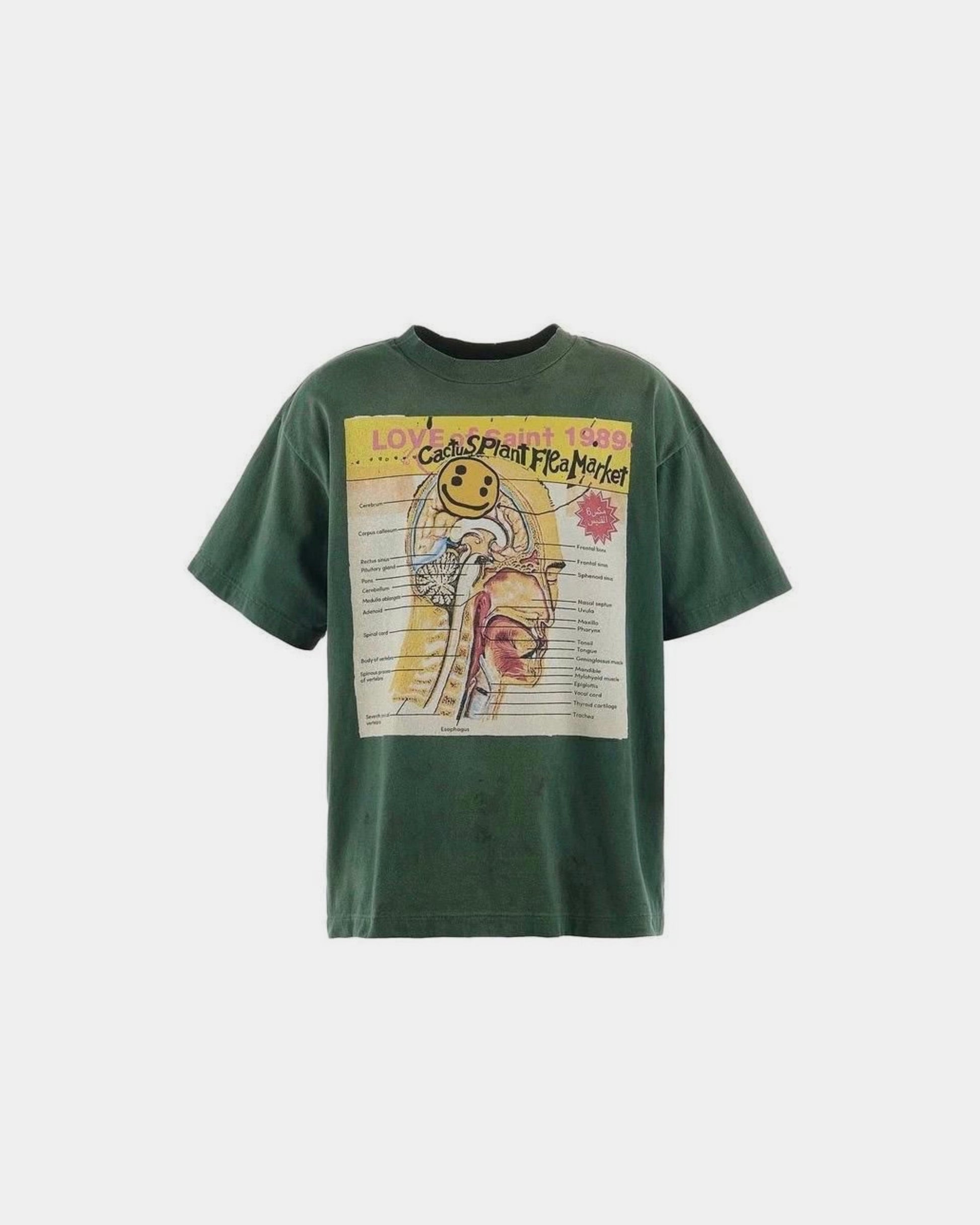 Introducing the SAINT Mxxxxxx brand, known for its innovative designs and boundary-pushing collaborations. Fall/Winter 2024 brings us the Love Of Sunset x Cactus Plant Flea Market Camiseta de Manga Corta in Verde. This highly anticipated collaboration combines the unique aesthetics of both designers, resulting in a vibrant and eclectic piece that is sure to turn heads. Whether you're a fan of graphic tees or simply appreciate wearable art, this Camiseta de Manga Corta is a must-have for your collection.