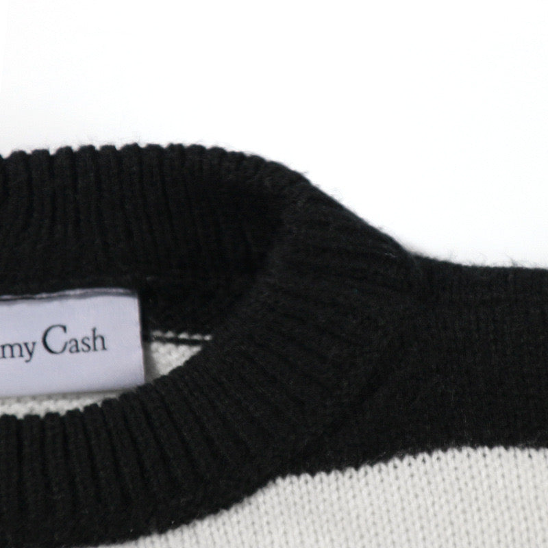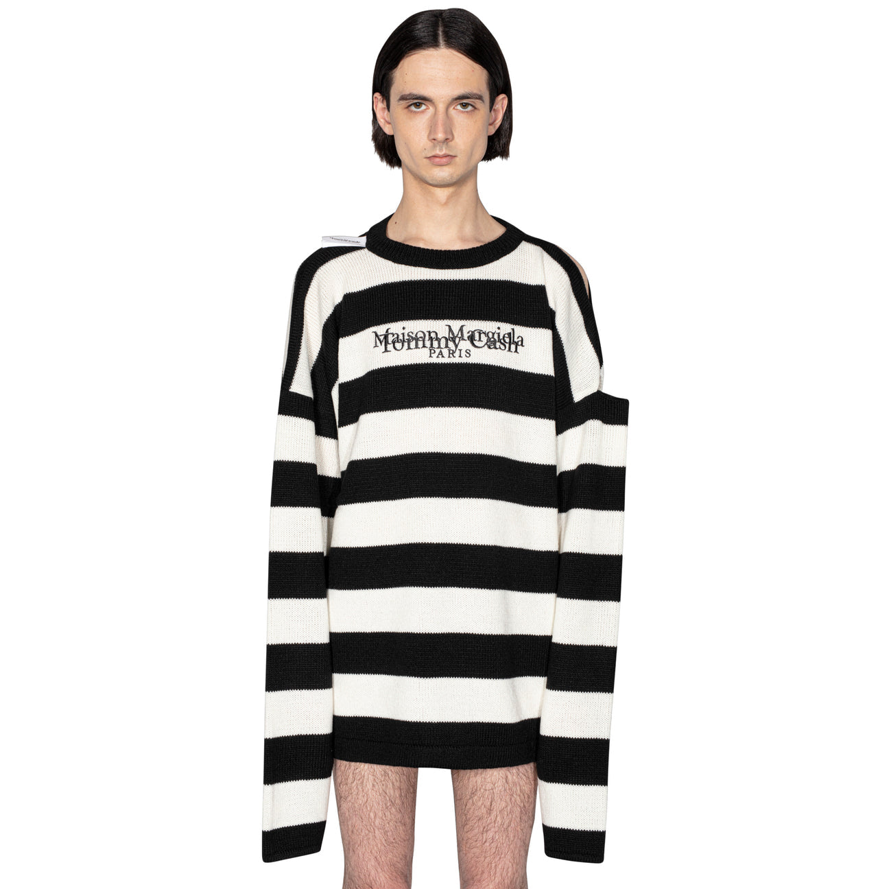 Elevate your style with the Maison Margiela x Tommy Cash Striped Sweater. Featuring a collaboration between two iconic brands, this sweater boasts playful stripes and a quirky design. Add an eclectic touch to your wardrobe with this must-have sweater. (Pun intended!)
