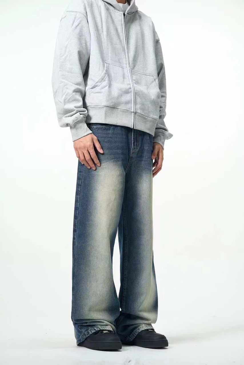 Men's vintage baggy jeans are a staple of retro fashion, reflecting the laid-back, carefree style of the 1980s and 1990s. These jeans are distinguished by their notably loose and relaxed fit, providing both comfort and a distinctive aesthetic. The high waist design adds to the retro vibe, sitting comfortably above the hips, while the wide legs offer ample room and a casual drape that tapers slightly towards the ankle.