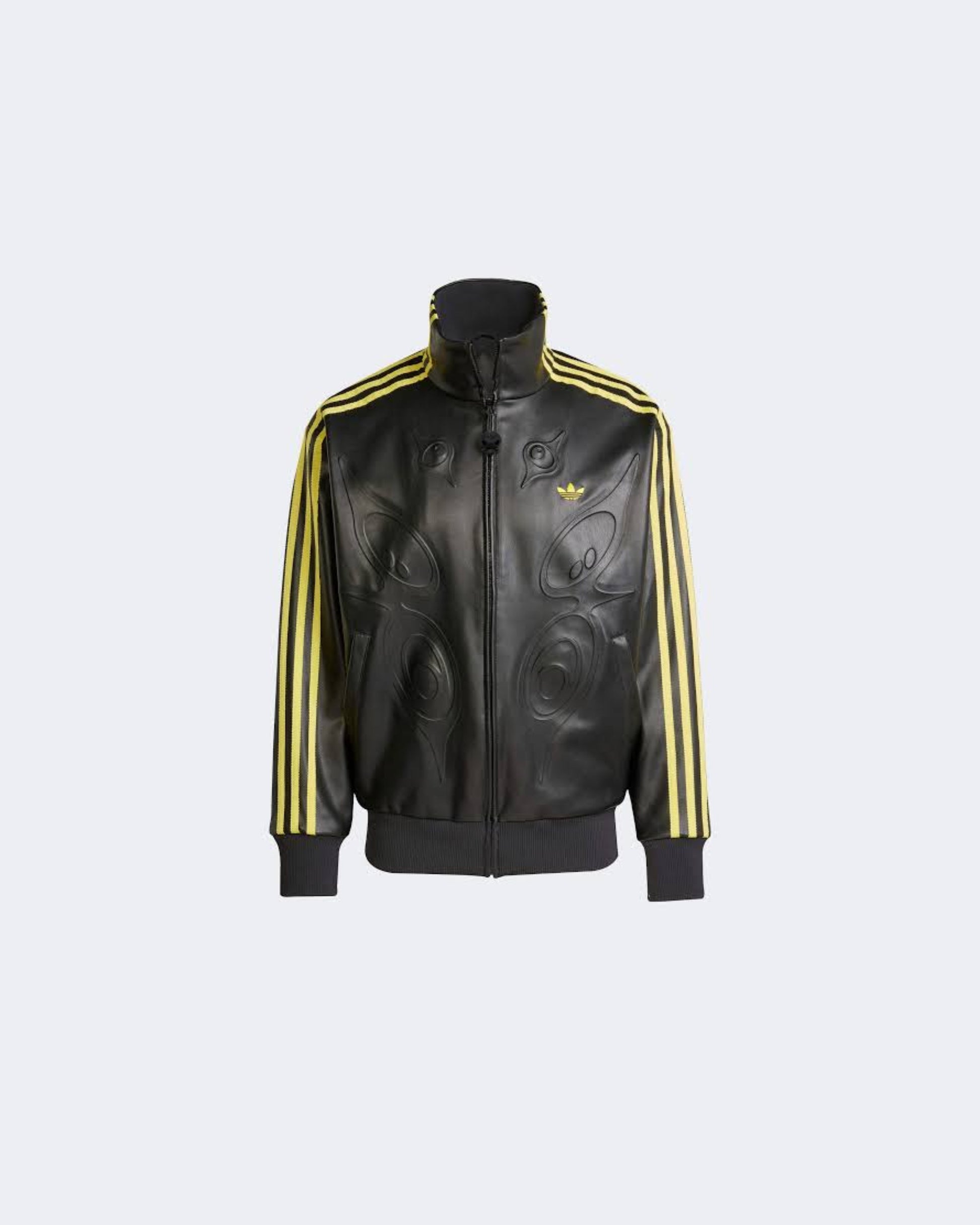 This track jacket reimagines adidas’ athletic DNA through OFFGOD’s experimental lens. Constructed in premium faux leather, the surface is embossed with abstract, almost anatomical forms — subtle from afar, intentional up close. The signature three stripes in muted yellow cut clean lines down the sleeves, balancing sport heritage with avant-garde expression.