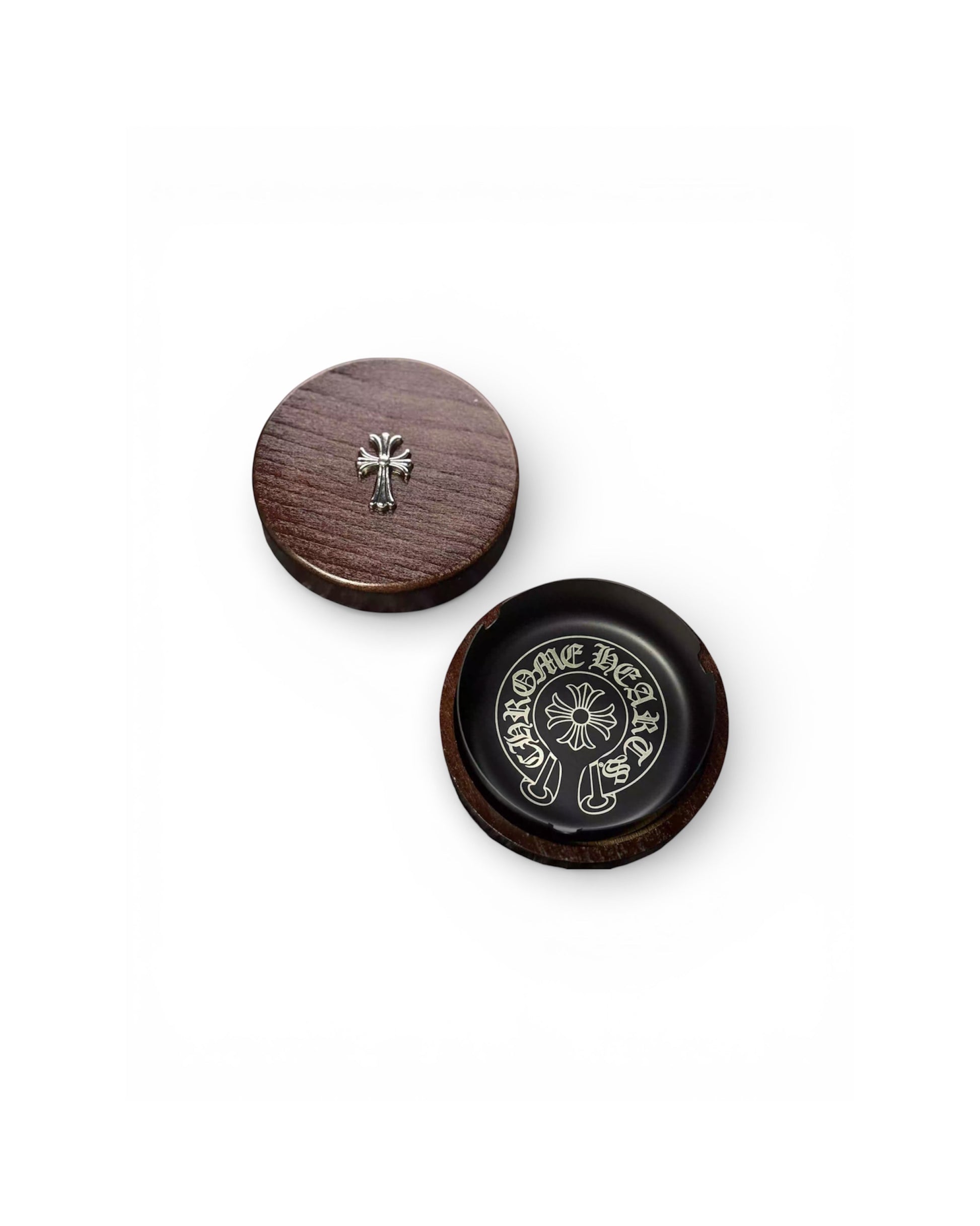The Ashtray feature the signature silver cross motif and "Chrome Hearts" branding, characteristic of their high-end gothic-inspired aesthetic.