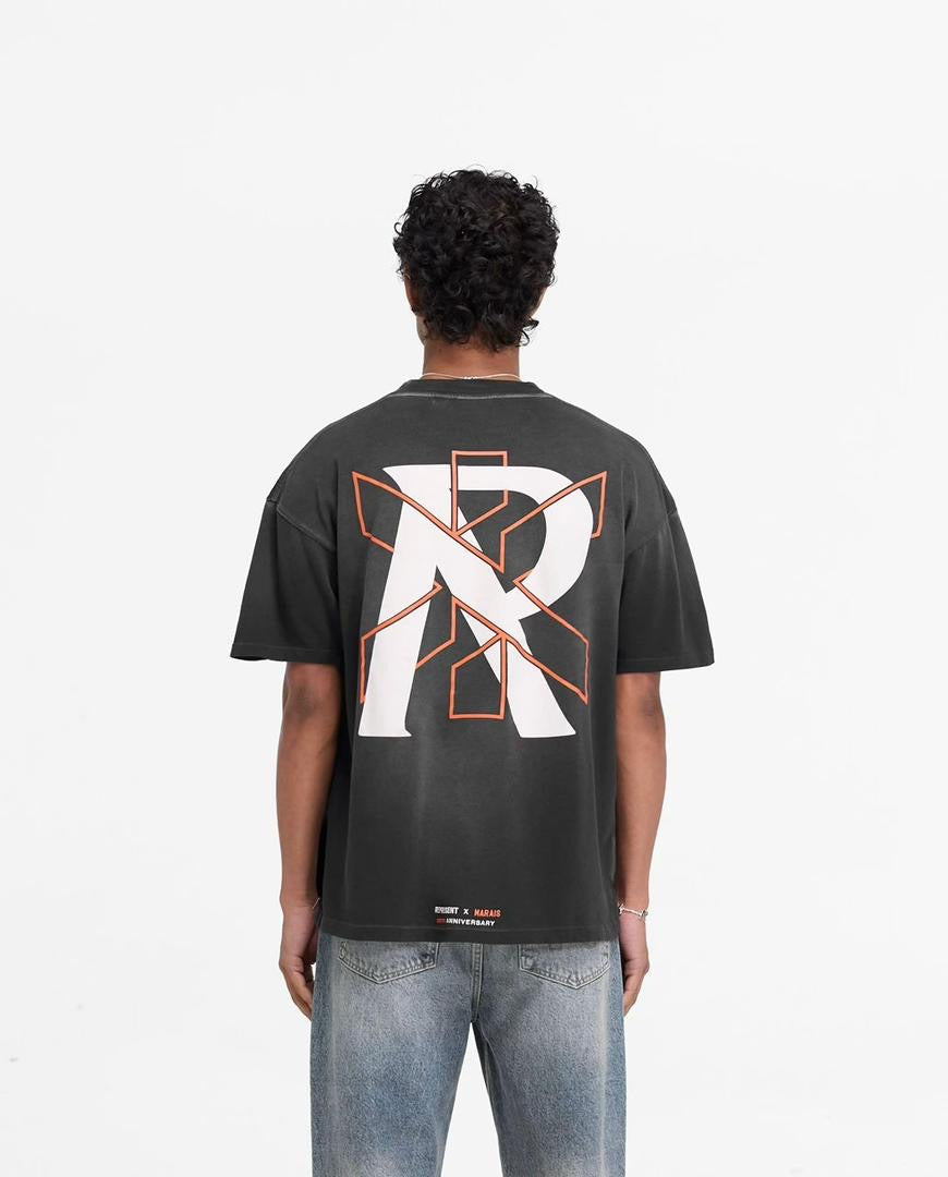 Collaborative limited edition logo T-Shirt. The front and back print intertwines the iconic Represent initial with the Marais emblem, symbolising unity.