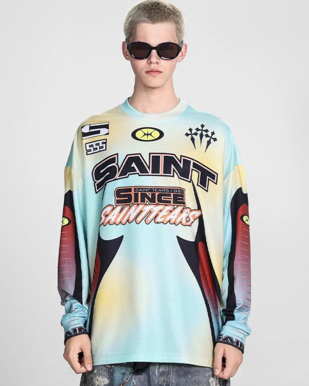 The Saint Tears Longsleeve T-Shirt is a stylish piece that blends comfort with a minimalist yet striking design. Typically featuring soft, high-quality cotton or cotton-blend fabric, this long-sleeve shirt offers a relaxed fit that makes it perfect for both casual wear and layering in cooler weather.