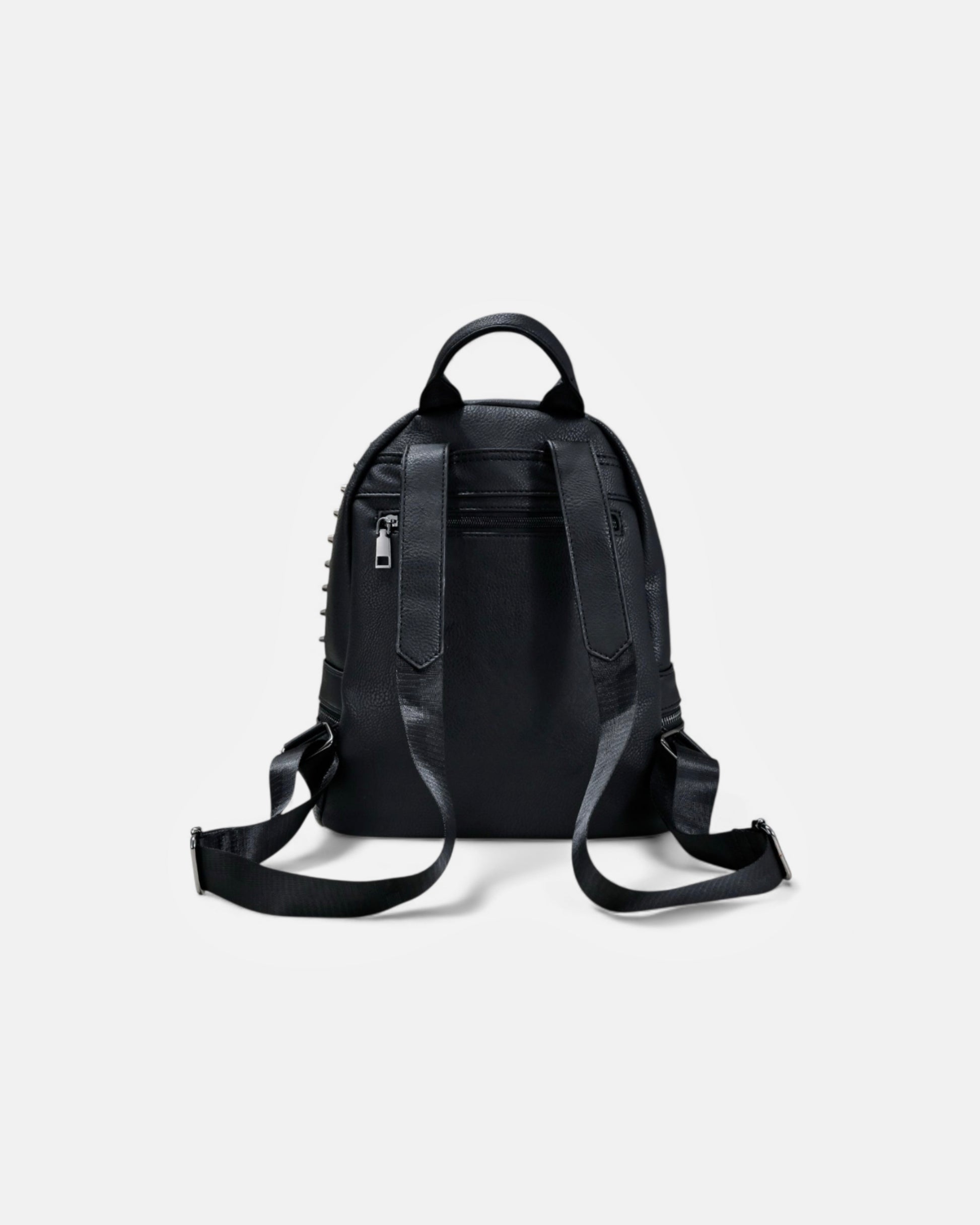 A double-compartment build adds function to the edge, with a lower zip pocket for essentials and a spacious main chamber for everyday carry. Padded straps balance comfort with utility, while the studded detailing makes it less of a bag and more of a statement.