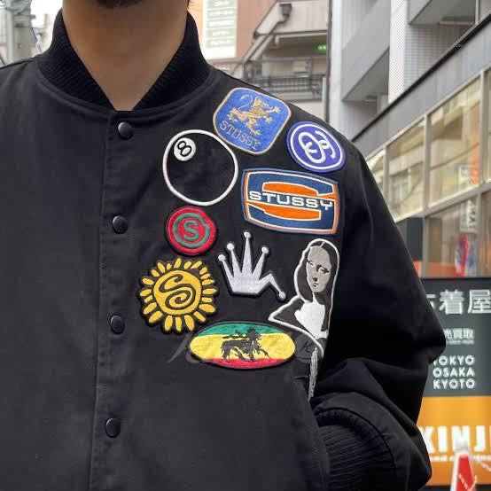 The jacket often comes in a lightweight material such as satin or nylon, with a ribbed collar, cuffs, and hem for a snug fit. The contrast-colored sleeves and a zip-up front closure add to its retro appeal. With its mix of bold embroidery and sleek silhouette, the Stussy Souvenir Jacket is perfect for those looking to add a standout outerwear piece to their wardrobe.