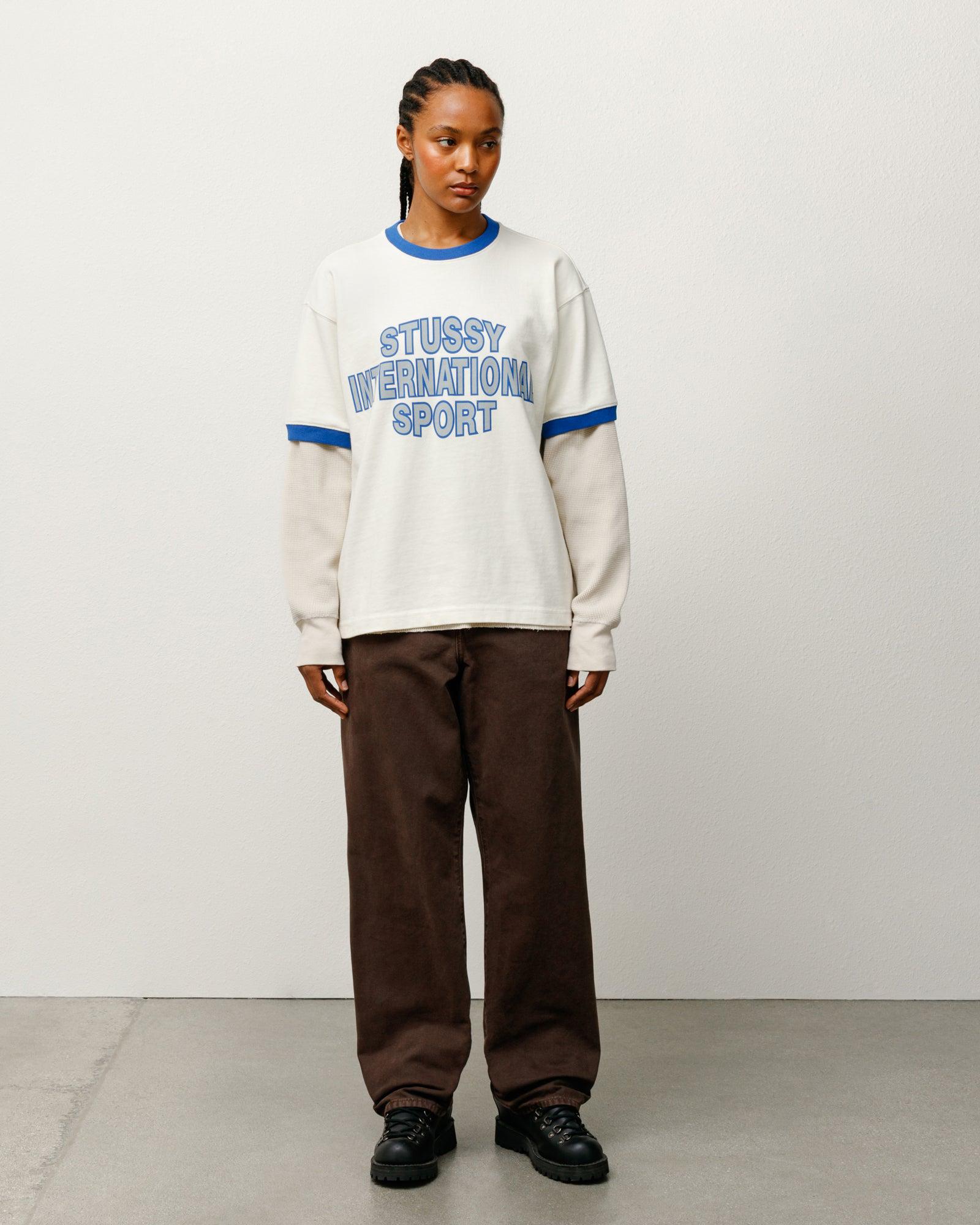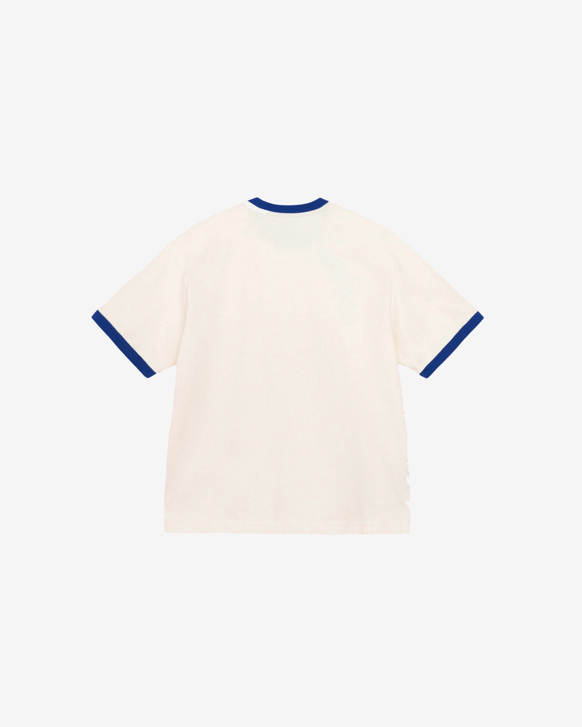 Oversized tee in heavyweight 320gsm cotton jersey. Features contrast ribbing and two-tone screenprinted Stüssy international graphic.