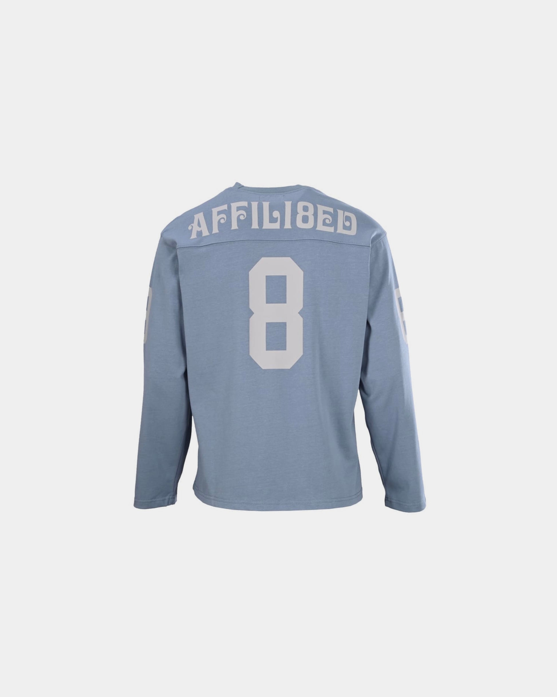 - Long sleeves with matching “8” details on both arms