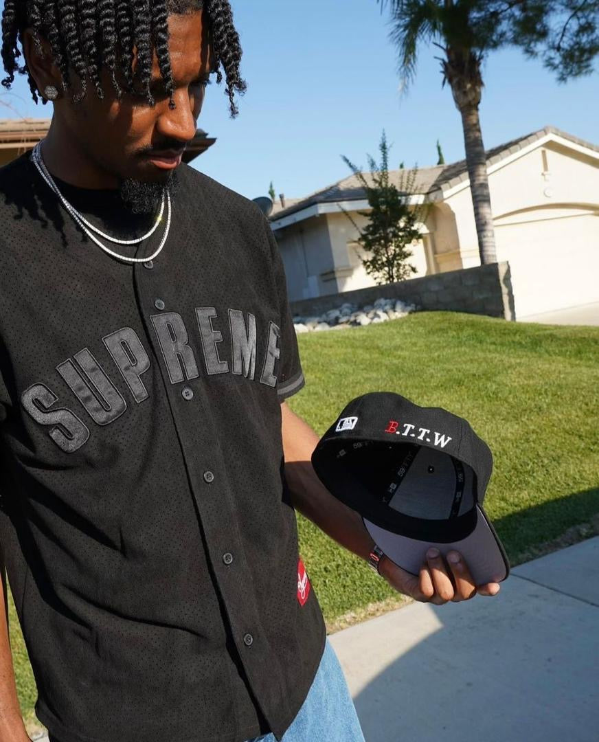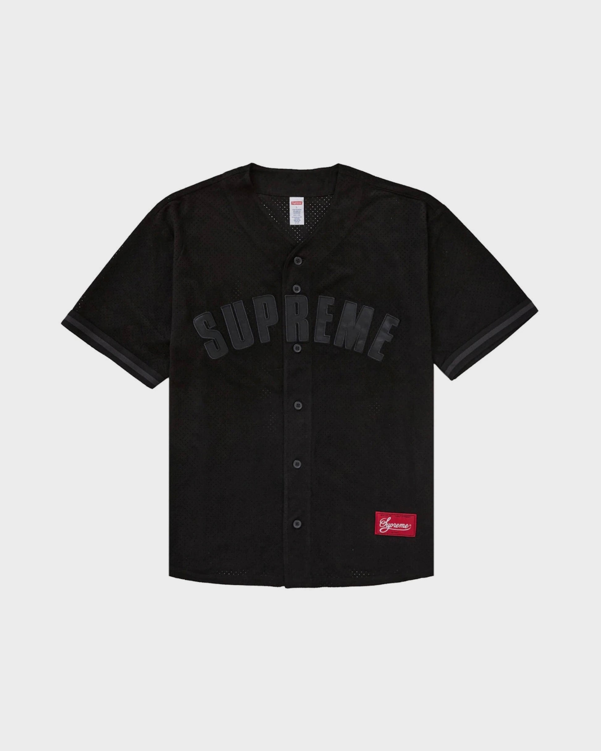 A classic reimagined. This Supreme Ultra Suede Mesh Baseball Jersey blends sport and street with effortless style. Crafted from breathable mesh and finished with a smooth suede-like texture, it delivers comfort while keeping a clean, elevated look. Featuring a button-up front, tonal “SUPREME” lettering across the chest, and the signature red label at the hem, it’s a versatile piece that works both on and off the field.