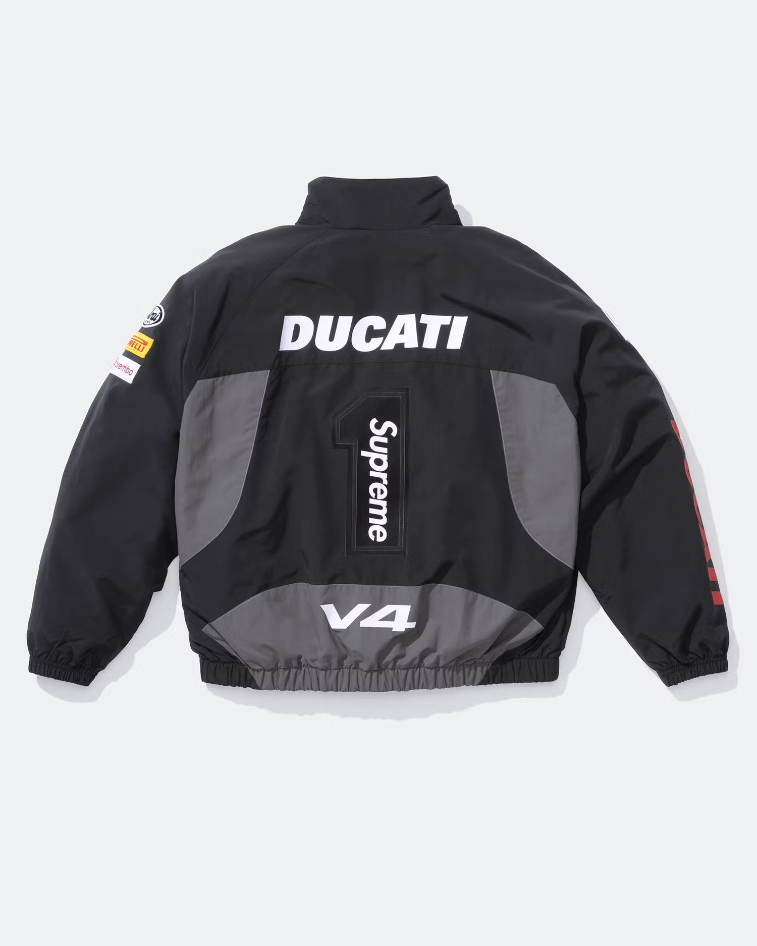 A high-speed statement piece born from one of streetwear’s boldest collaborations. This jacket blends Supreme’s defiant DNA with Ducati’s race-day adrenaline — engineered to stand out in stillness or motion.