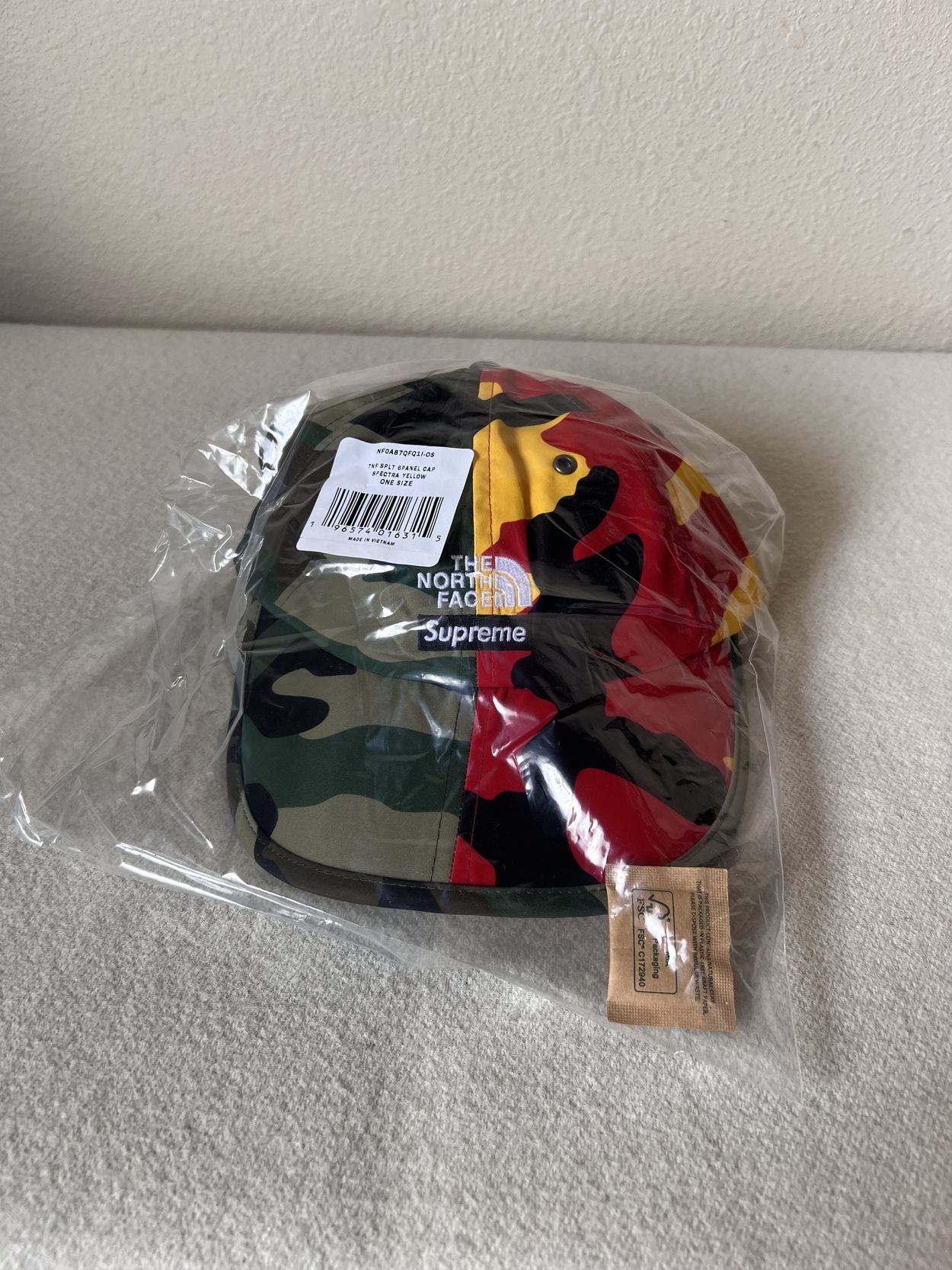 A rare clash of two streetwear giants. This split-panel camo cap blends North Face functionality with Supreme’s bold identity—crafted for those who move different. Lightweight, durable, and disruptive in all the right ways.