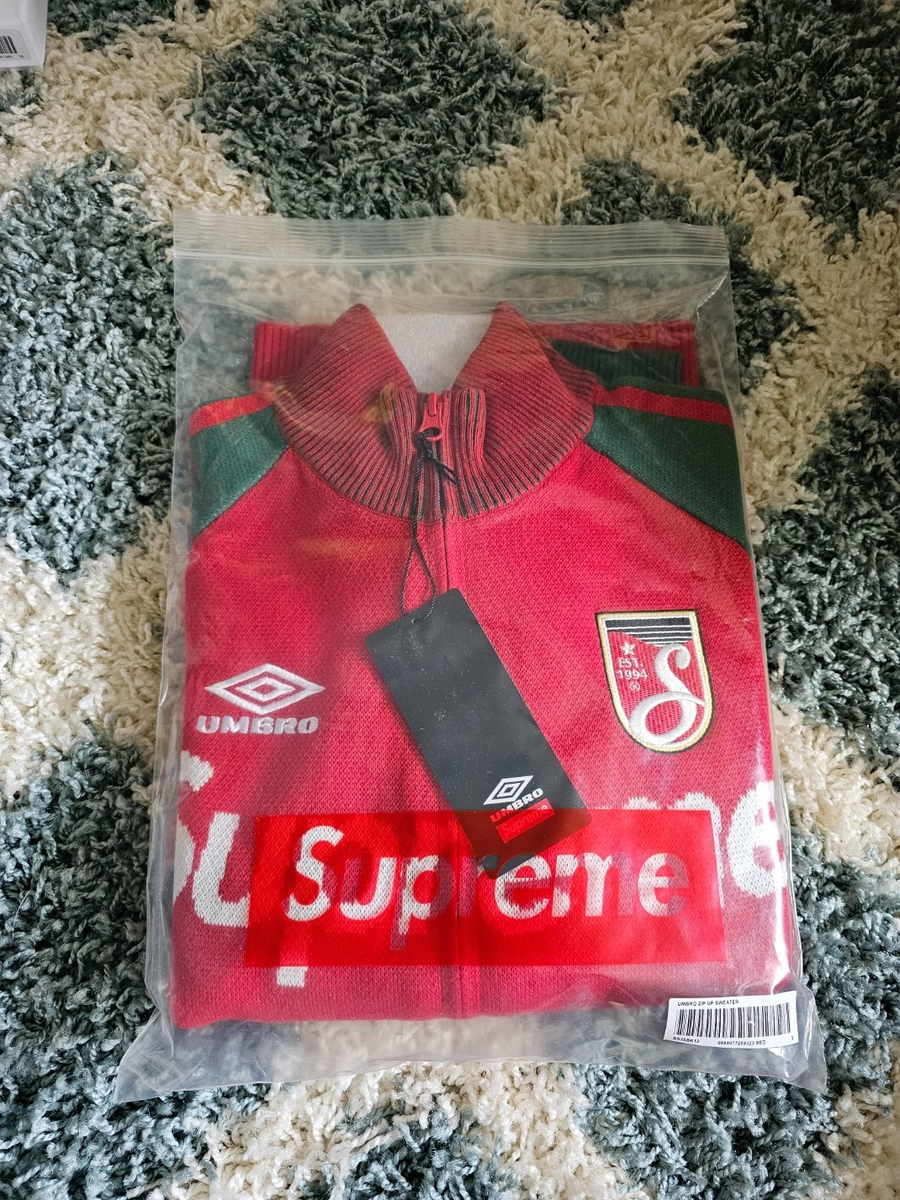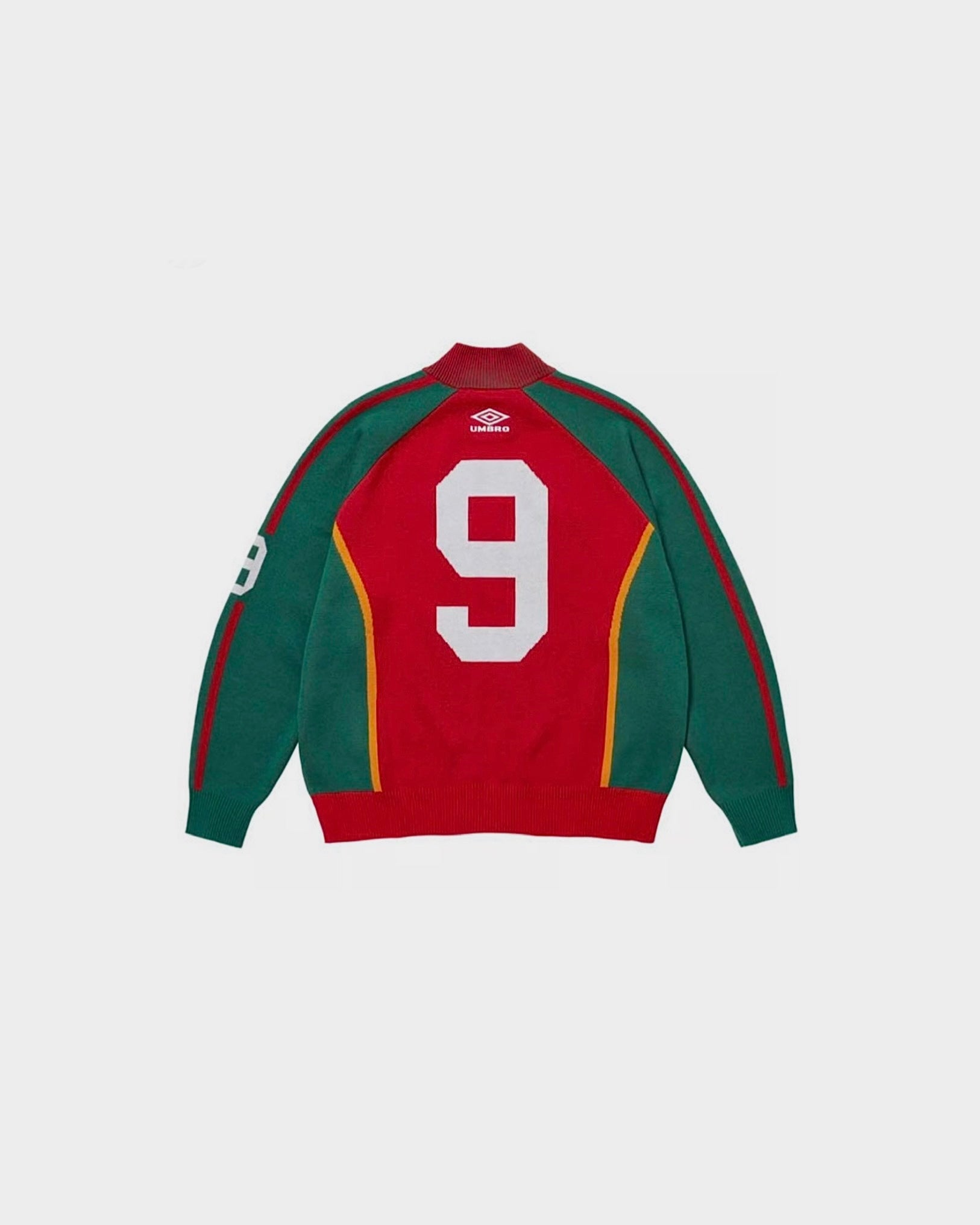 A clash of legacy and rebellion. This limited-run knit dropped as part of Supreme’s Spring/Summer campaign, merging Umbro’s football heritage with Supreme’s street authority. The vintage color block, heavy gauge knit, and bold “9” patchwork nod to 90s pitch culture— reimagined for the sidewalks.