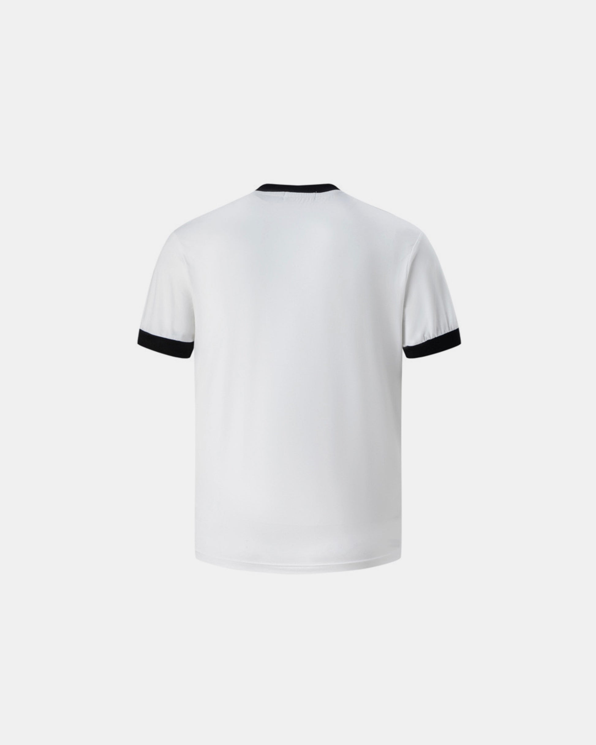 ∙ Classic white body with contrasting black ribbed crew neck and sleeve bands