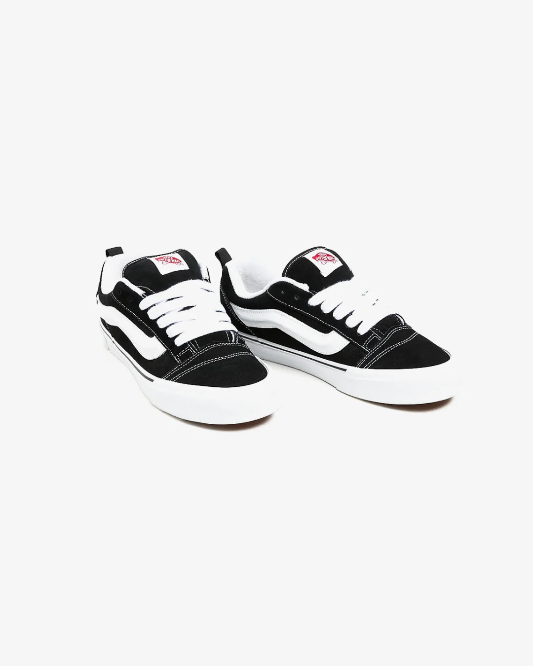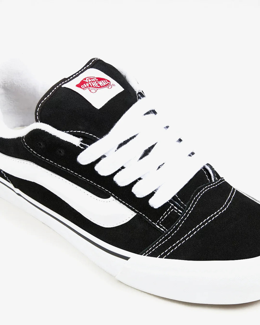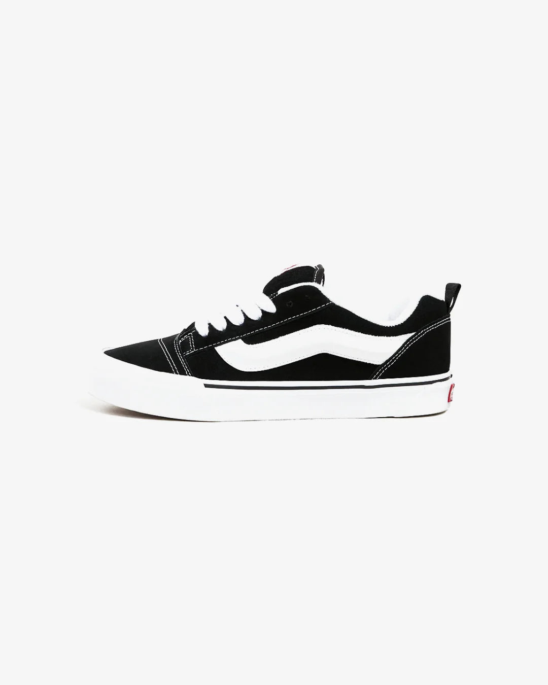 The Vans Knu Skool 'Black/White' Sneakers bring a fresh take on the classic skate shoe, merging a retro-inspired design with modern features. These sneakers feature a chunky silhouette that recalls the bold, oversized aesthetics of the early 2000s, perfect for skaters and style enthusiasts alike.